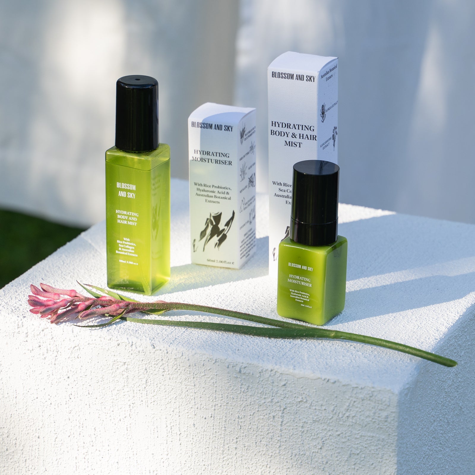 Introducing the Ultra Hydration Bundle! Pamper your complexion with our facial moisturiser, which hydrates and nurtures skin on your face and neck. And spritz our body and hair mist to liven up, hydrate, and boost collagen in hair and on your body. The ultimate duo!