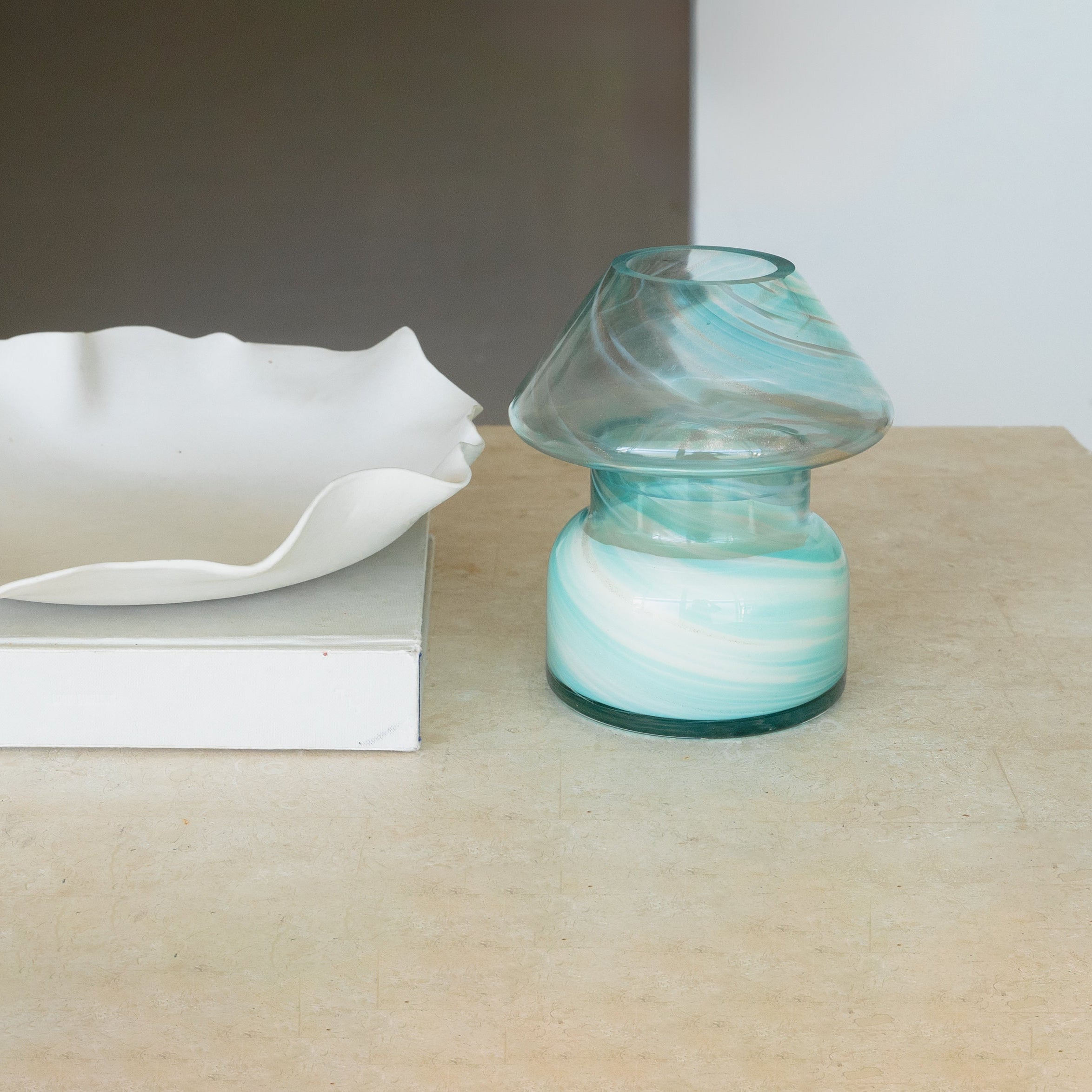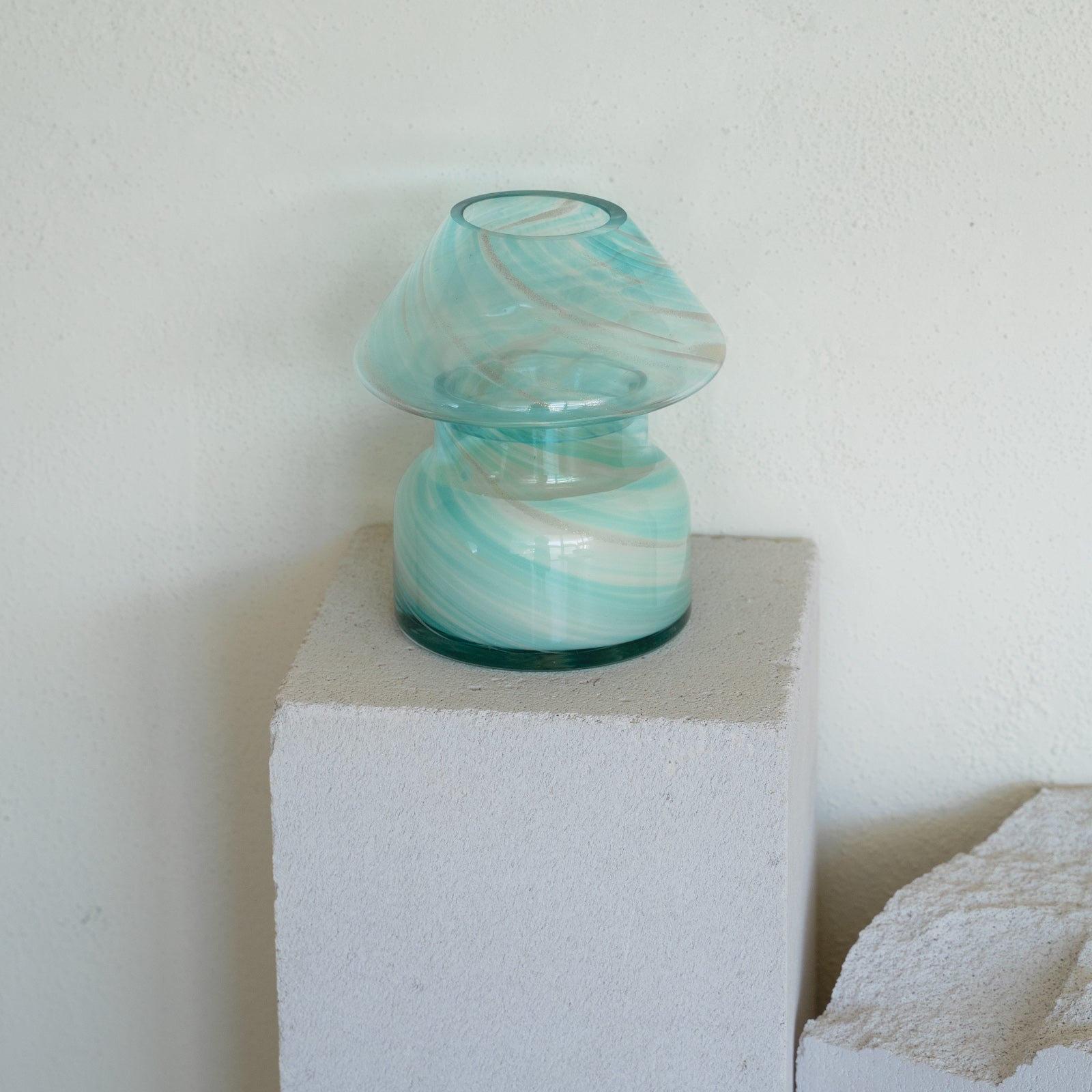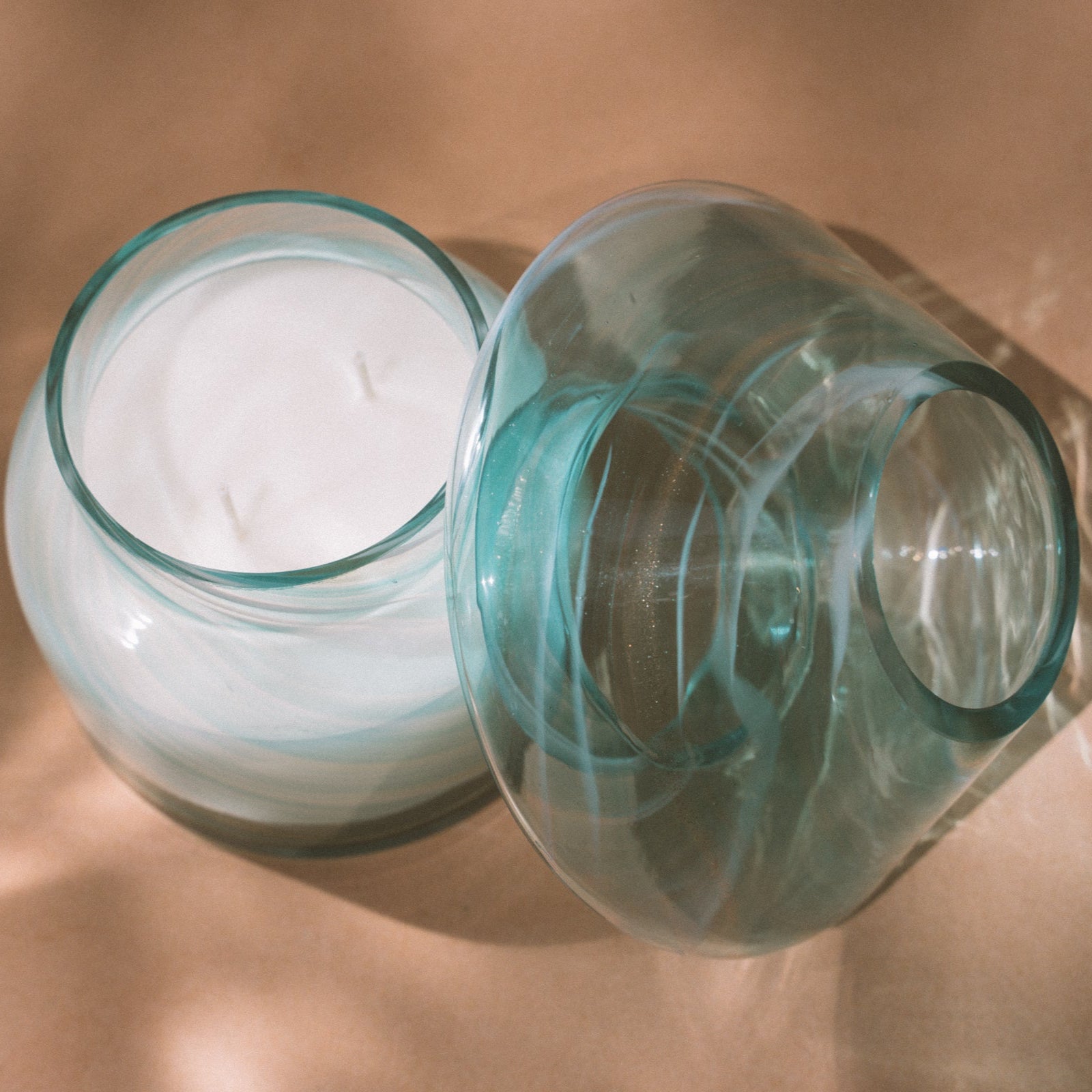 Our sustainable candle lamp is a unique piece that spices up any decor. With a retro aesthetic, mushroom-shaped glass construction, and a 100% soy wax candle inside, this lamp will fill your home with a luxurious aroma. Let a flame or sunbeam pass through the glass and marvel at the beautiful shades of light in your space. When the candle has been used, place our candle refills in and keep your lamp twinkling and your home smelling divine. Or, use it as a vase and inject a burst of color with fresh flower cuttings.
