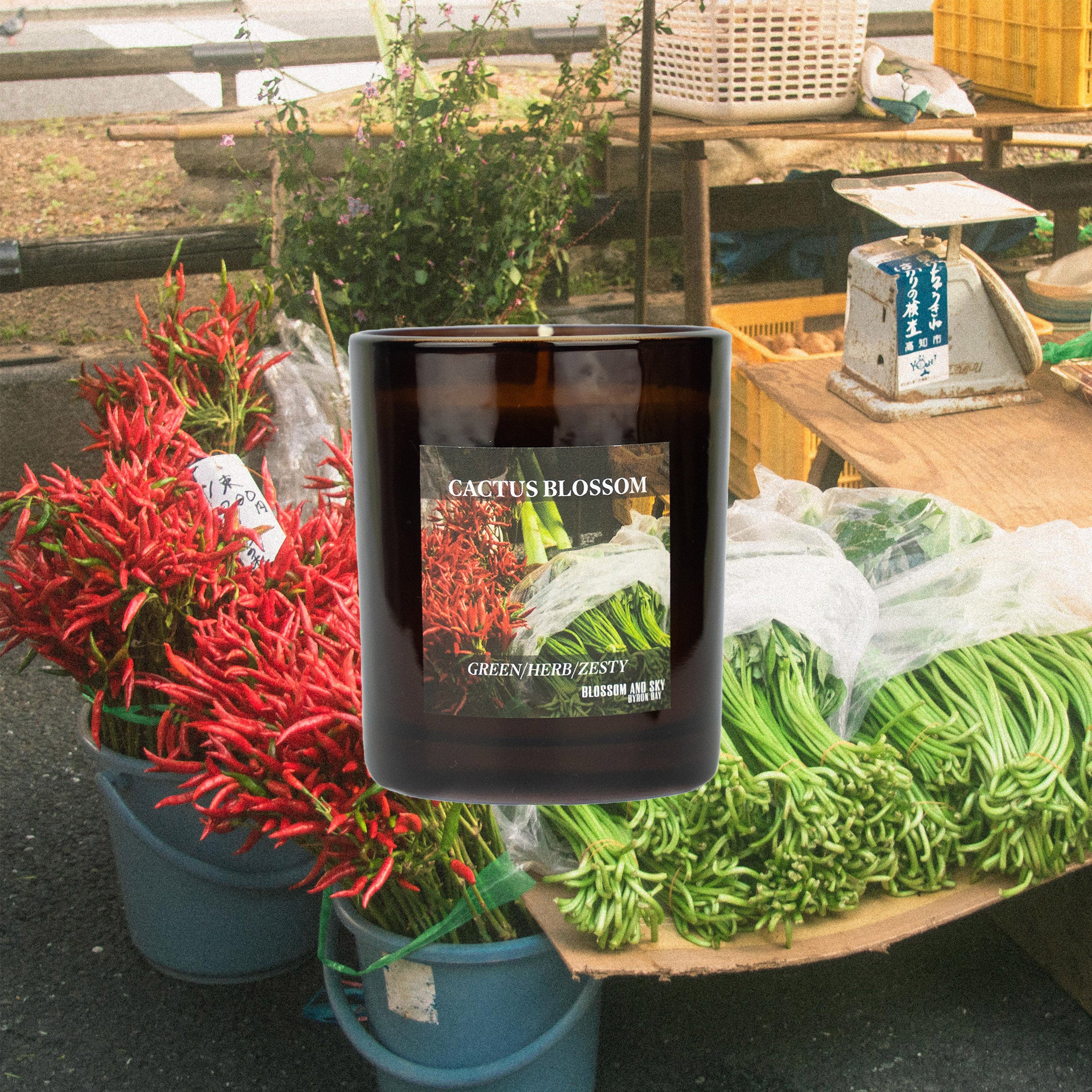 Fragrance: Cactus Blossom transports you to a vibrant desert garden at sunset, where the fresh scent of green herbs and citrusy orange blends with delicate blooms and the earthy warmth of cedar wood, musk, and amber.