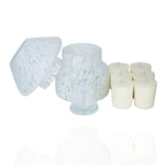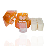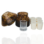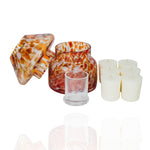 Candle Cautions: Please never leave a flame unattended. Place candle lamp on a heat resistant surface and use protective gloves when taking off the lid to extinguish flame, as glass can get extremely hot.