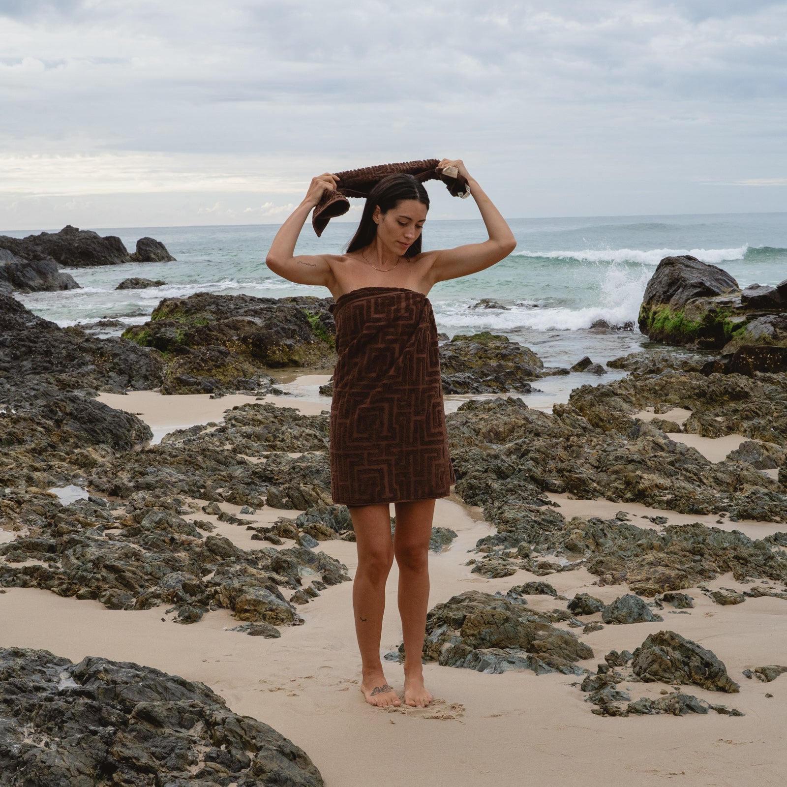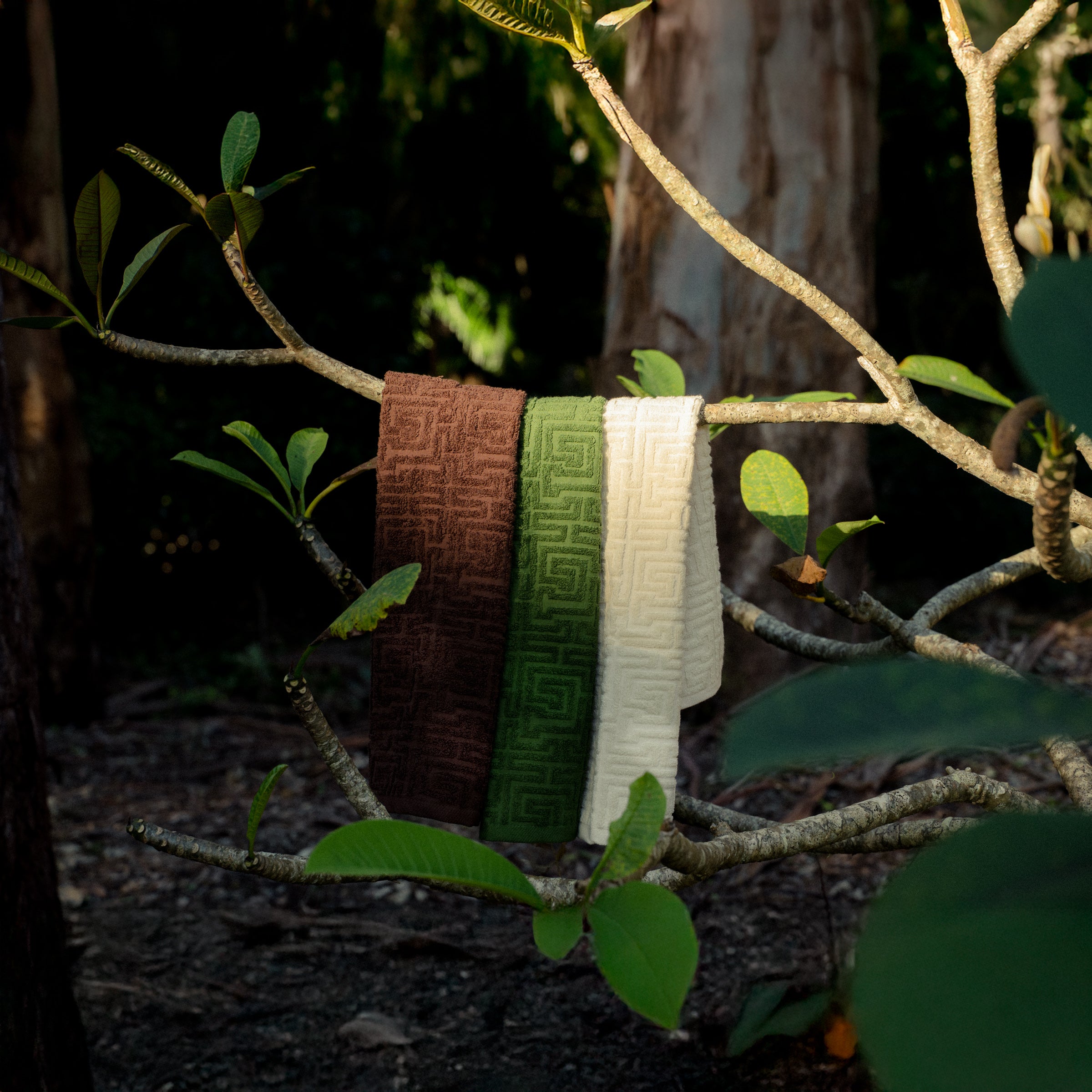 Complete your bathroom with the Renji Hand Towel in Cocoa, a lightweight yet luxurious essential inspired by traditional Japanese craftsmanship. The name Renji ( 連路) means "connected path", symbolising harmony, movement, and timeless design—elements reflected in its intricate, maze-like pattern. Inspired by the geometric motifs found in ancient Japanese onsens, the Renji print brings a sense of balance and tranquility to your space.