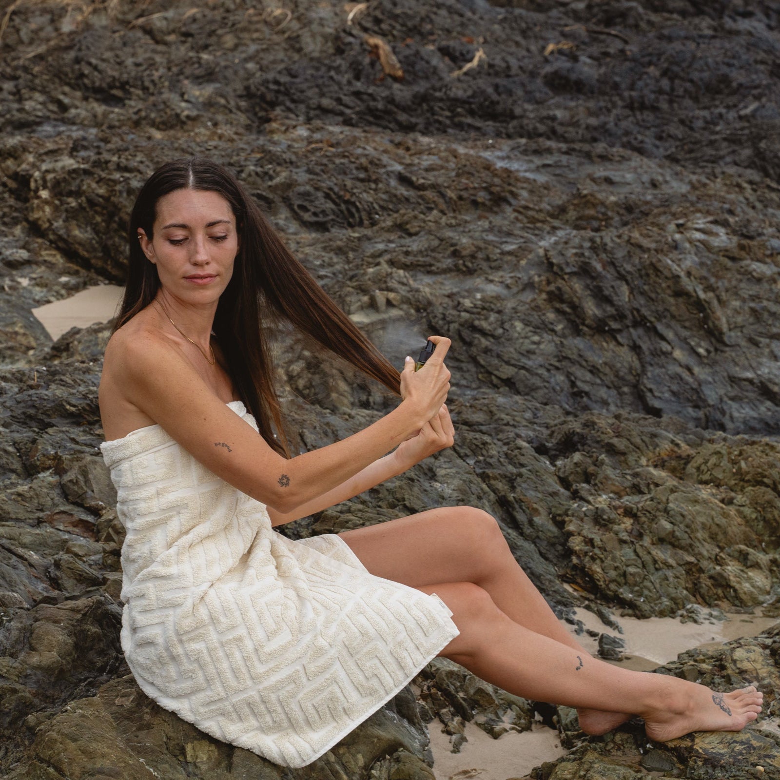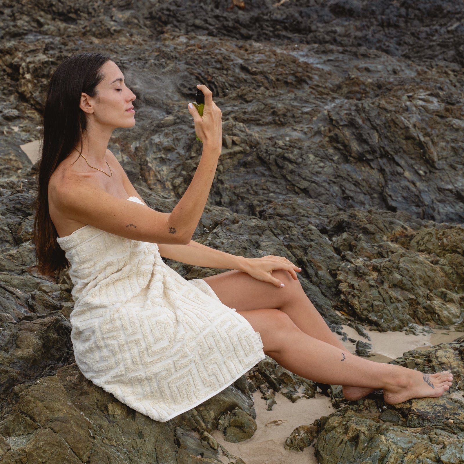 Our hydrating body and hair mist, a creation of our expert chemists, draws inspiration from both traditional Asian skincare ingredients and native Australian botanicals. Our premium active components work harmoniously to hydrate, restore, illuminate, and delicately perfume your body and hair. With over 90% natural ingredients, including ceramides, sea collagen, and hyaluronic acid, this mist provides continuous moisturizing hydration throughout the day. Unleash the power of our meticulously designed, science-backed mist and transform your self-care routine.